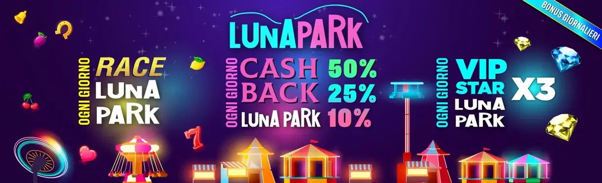 Ad esempio, nella categoria Race Luna Park vengono messi in palio ogni giorno 2.000€. Nella categoria cashback Luna Park, invece, puoi ricevere un di rimborso sulle tue perdite, che può essere del 50%, del 25% o del 10% a seconda del titolo coinvolto.